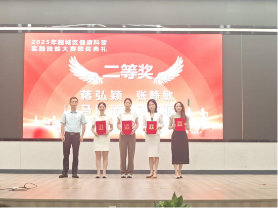 近日,由越城区卫生健康局主办的2025年越城区健康科普实践技能比赛圆满落幕。我院选派代表沈晨雪和蒋弘颖表现优异,分别斩获一等奖和二等奖,展现了我院在健康促进与教育工作方面的扎实功底与创新活力。
