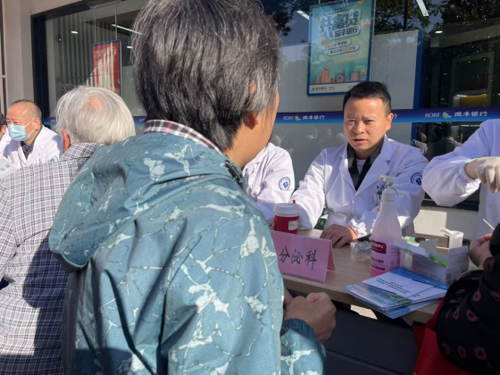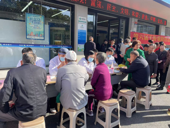 10月29日,一年一度重阳节,为大力弘扬中华民族尊老、敬老、爱老、助老的优良传统,切实提升社区老年居民的健康素养与自我保健能力,我院行政党支部与共建单位瑞丰银行(新城支行)联合举办了“情暖重阳 健康相伴”主题义诊活动,为周边社区的老年朋友们送去了一份温暖而实在的“健康礼包”。