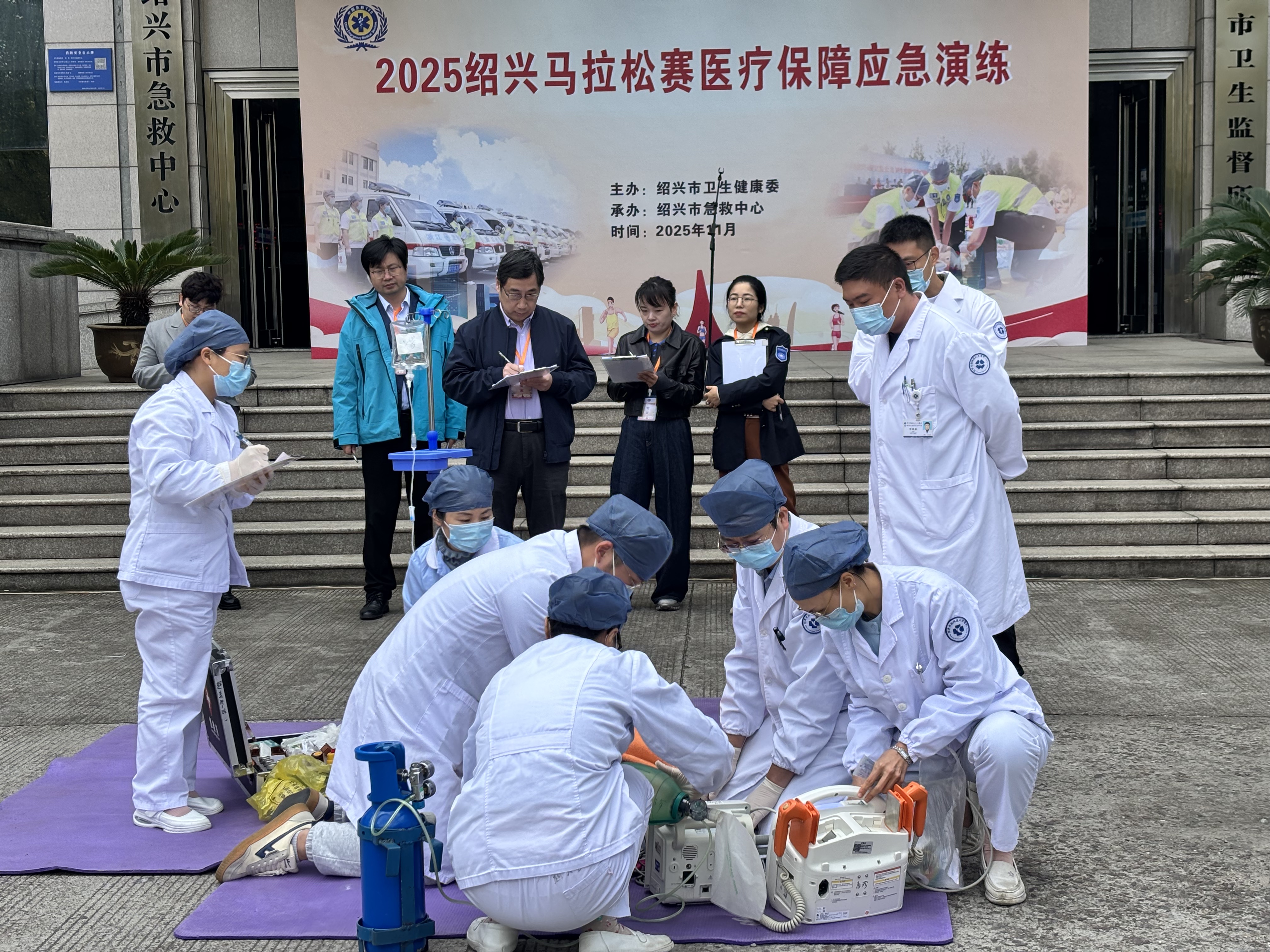 11月23日,2025绍兴马拉松赛事在万众瞩目中鸣枪起跑,赛道上选手们如离弦之箭,奋勇向前,而在这场速度与激情的盛会背后,我院的医护人员们默默坚守,用专业与担当为赛事筑起了一道坚实的健康防线。