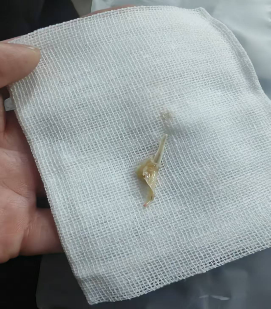 在麻醉科团队紧密监护和精准麻醉下,赵礼君主任带领诊疗小组迅速开展手术。通过高清电子喉镜精准定位异物,利用专业器械轻柔取出甲鱼骨,并确认食道黏膜无损伤。整个手术过程仅耗时15分钟,患者术后即刻恢复自主呼吸,咽喉疼痛显著缓解。