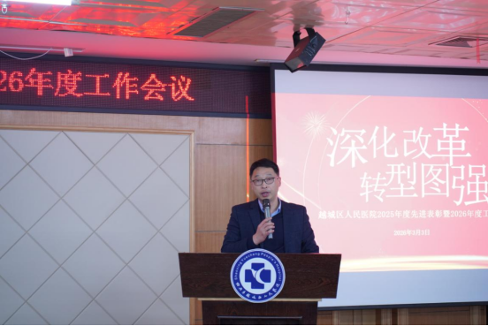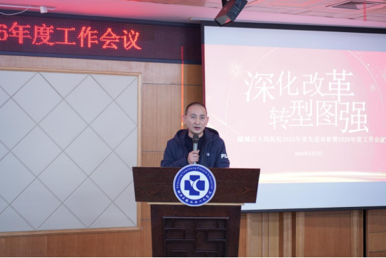 岁序更替,华章日新。2026年3月3日,越城区人民医院2025年度先进表彰暨“深化改革 转型图强”2026年度工作会议顺利召开。医院党政领导班子全体成员、中层干部、受表彰的先进集体和个人、职工代表等齐聚一堂,共同回望过去一年的奋斗历程,擘画新一年医院高质量发展的宏伟蓝图。